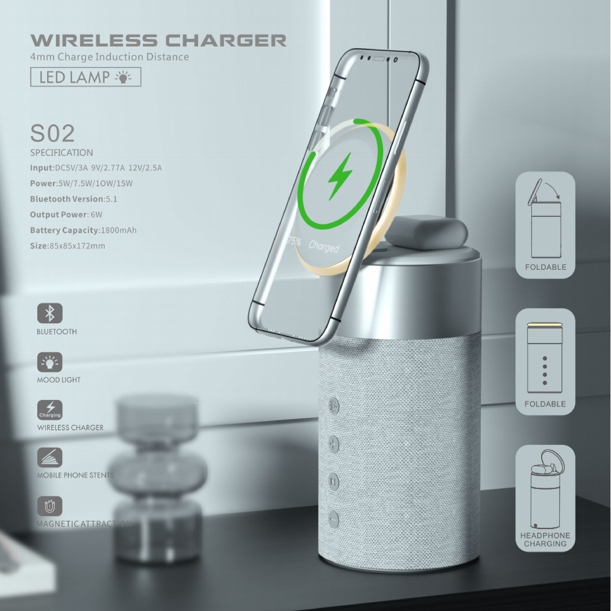 Elegant Furniture (Wireless Charger + Clock + Lamp) E